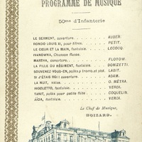 Le serment, ouverture ; Rondo Louis XI, pour Fifres ; Le coeur et la main, fantaisie ; Ivanowna, Chanson Russe ; Martha, ouverture ; La fille du Régiment, fantaisie ; Souvenez-vous-en, polka pour trombones et pistons ; Si j'étais Roi ! Ouverture ; La nuit, Valse ; Rigoletto, fantaisie ; Tanit, polka pour petite flûte ; Aïda, fantaisie.