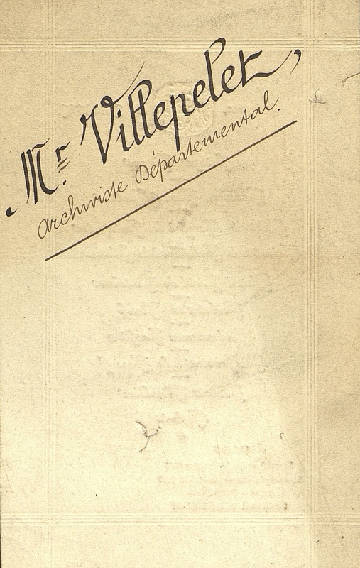 Mention manuscrite au verso : M. Villepet, archiviste départemental .