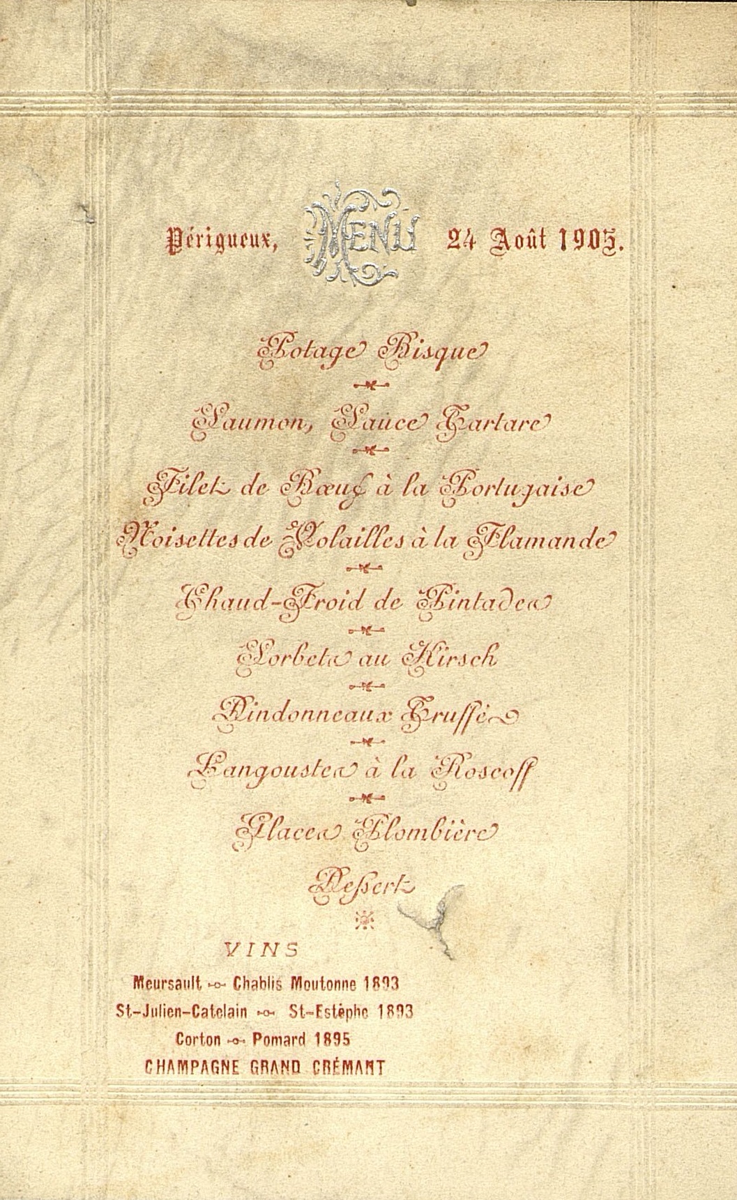 Menu du 24 août 1905