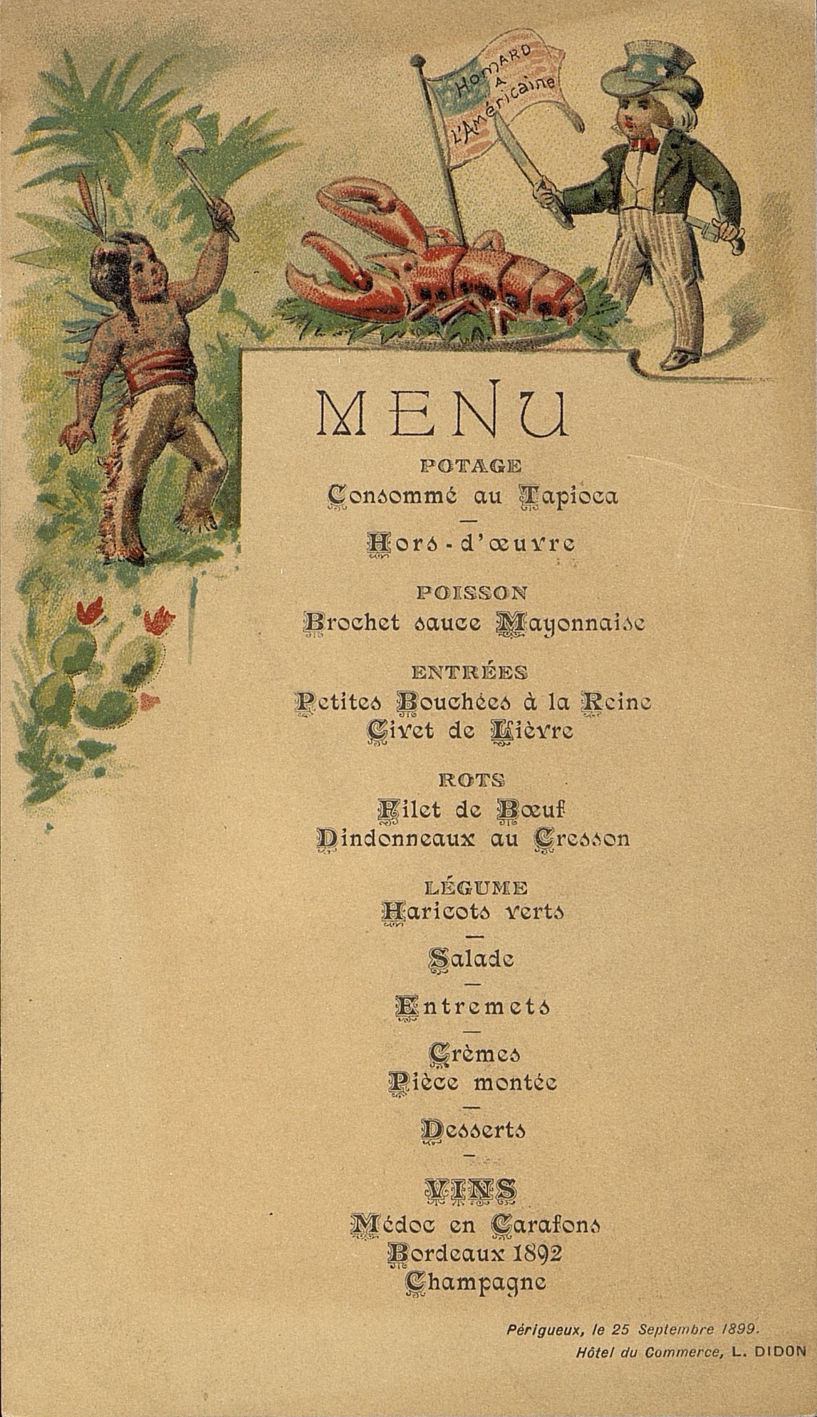 Menu en date du 25 septembre 1899.