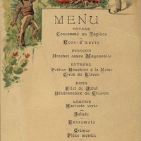 Plats servis : Potage : Consommé au tapioca. Poisson : Brochet sauce Mayonnaise. Entrées : Petites Bouchées à la Reine. Civet de Lièvre. Rots : Filet de bœuf. Dindonneaux au Cresson. Légume : Haricots verts. Salade. Entremets : Crème. Pièce montée. Desserts.