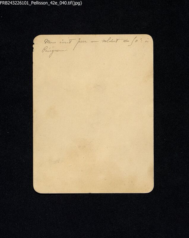 Au verso : mention manuscrite : Menu écrit par un soldat du 50e à Périgueux.