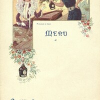 Menu vierge en couleur, thème de la Promenade en canot. Publicité commerciale pour la Bénédictine.