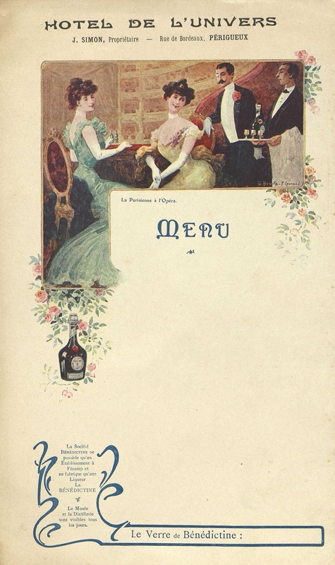 Menu vierge en couleur, thème de La Parisienne à l'Opéra.