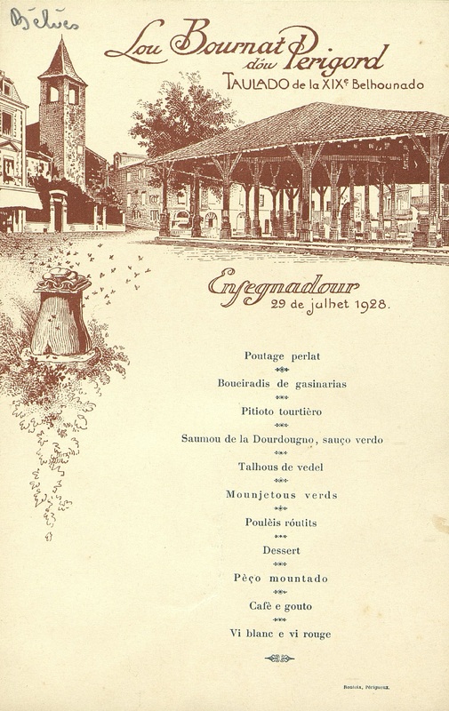 Félibrée de Belvès. Ensegnadour = Menu