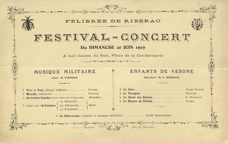 Dépliant programme de la Félibrée de Ribérac du 20 juin 1909.