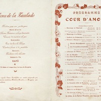 Programme de la Cour d'amour en deux parties : suite de poésies et de morceaux chantés, parfois de compositions classiques. L’ accompagnement au piano de la Maison Messerer est tenu par M. Tenant.