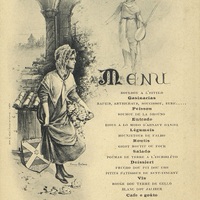 Plats servis : Boulhou a l'eitelo = Bouillon . Gasinarias = Hors-d’œuvre. Rafeis, Artrichaus, Soucissou, Bure...= Radis, artichauts, saucisson, beurre...