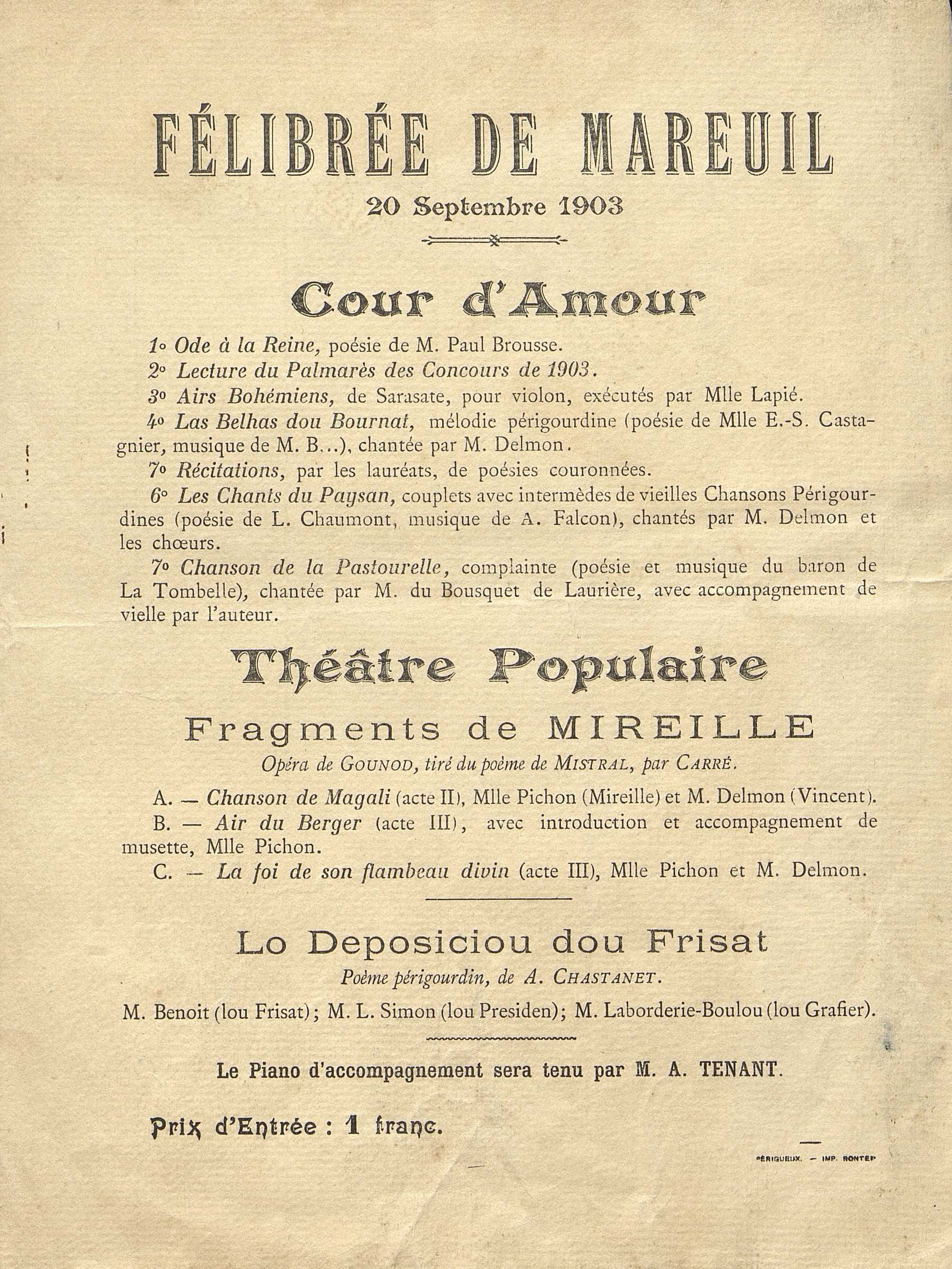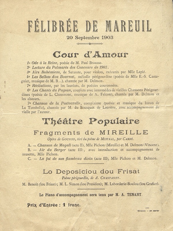 Félibrée de Mareuil. 20 septembre 1903