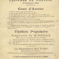Lo Deposiciou dou Frisat : poème périgourdin de A. Chastanet [interpr. par ] M. Benoît (lou Frisat), M.L. Simon (lou Presiden), M. Laborderie-Boulou (lou Grafier). Le piano d'accompagnement sera tenu par M. Tenant.