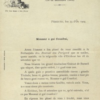 Correspondance en préparation à la deuxième Fête des abeilles. Félibrée d'Excideuil