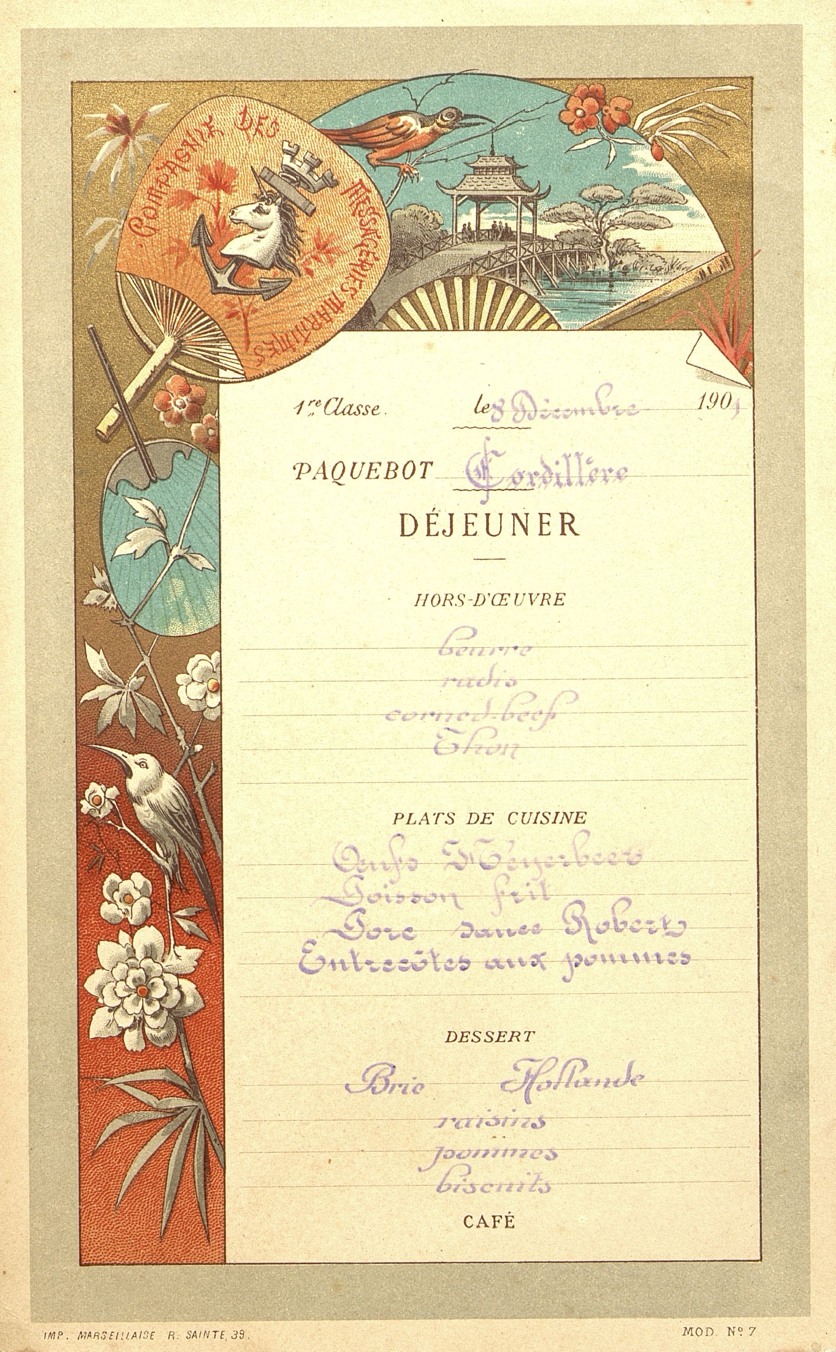 Menu du paquebot Cordillère