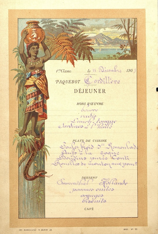 Menu du paquebot Cordillère