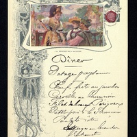 Plats servis : Potage paysanne. Oeufs frits au jambon. Cervelle au beurre noir. Filet de bœuf Périgueux. Petits pois à la française. Poulet rôti. Asperges en branches . Entremets. dessert.