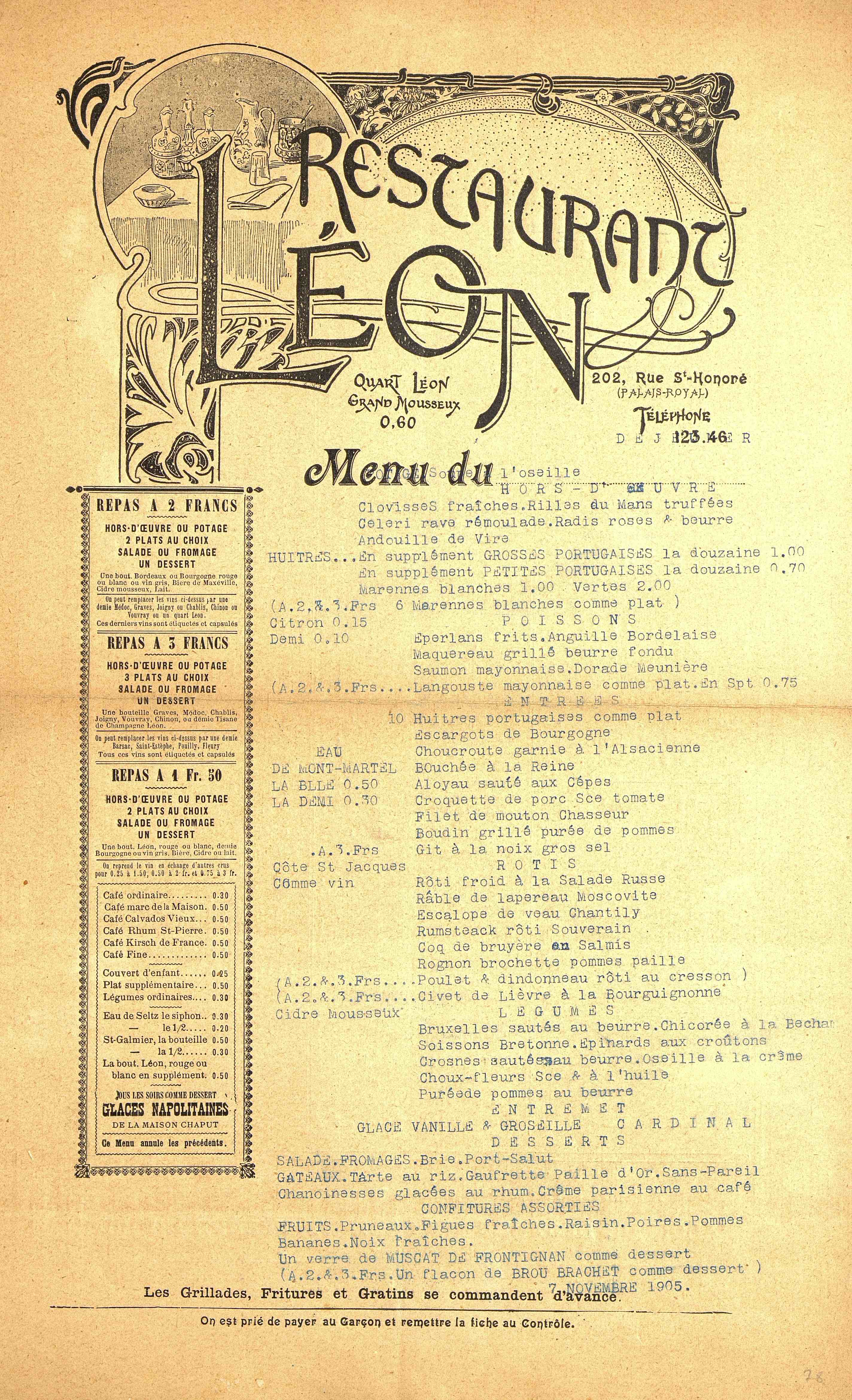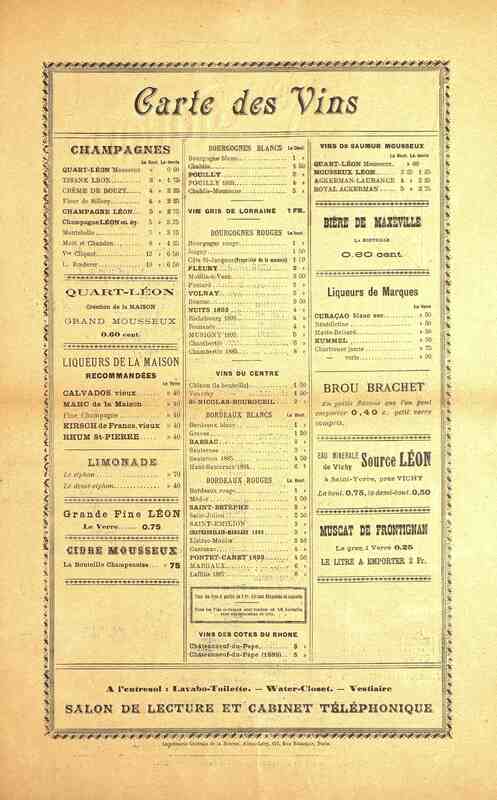 [Carte de restaurant. Paris. s.d.]