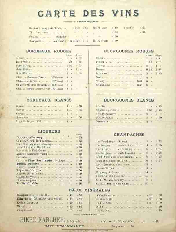 [Carte de restaurant. Paris. 1903.]