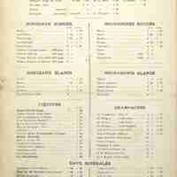 Menu-affichette du restaurant Fournier,V Gandon à Paris. Illustré et portant deux publicités. Tarifs des services pour le jeudi 25 janvier 1903. Au dos la carte des vins.