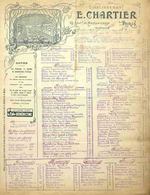 Menu-affichette de l'établissement E. Chartier