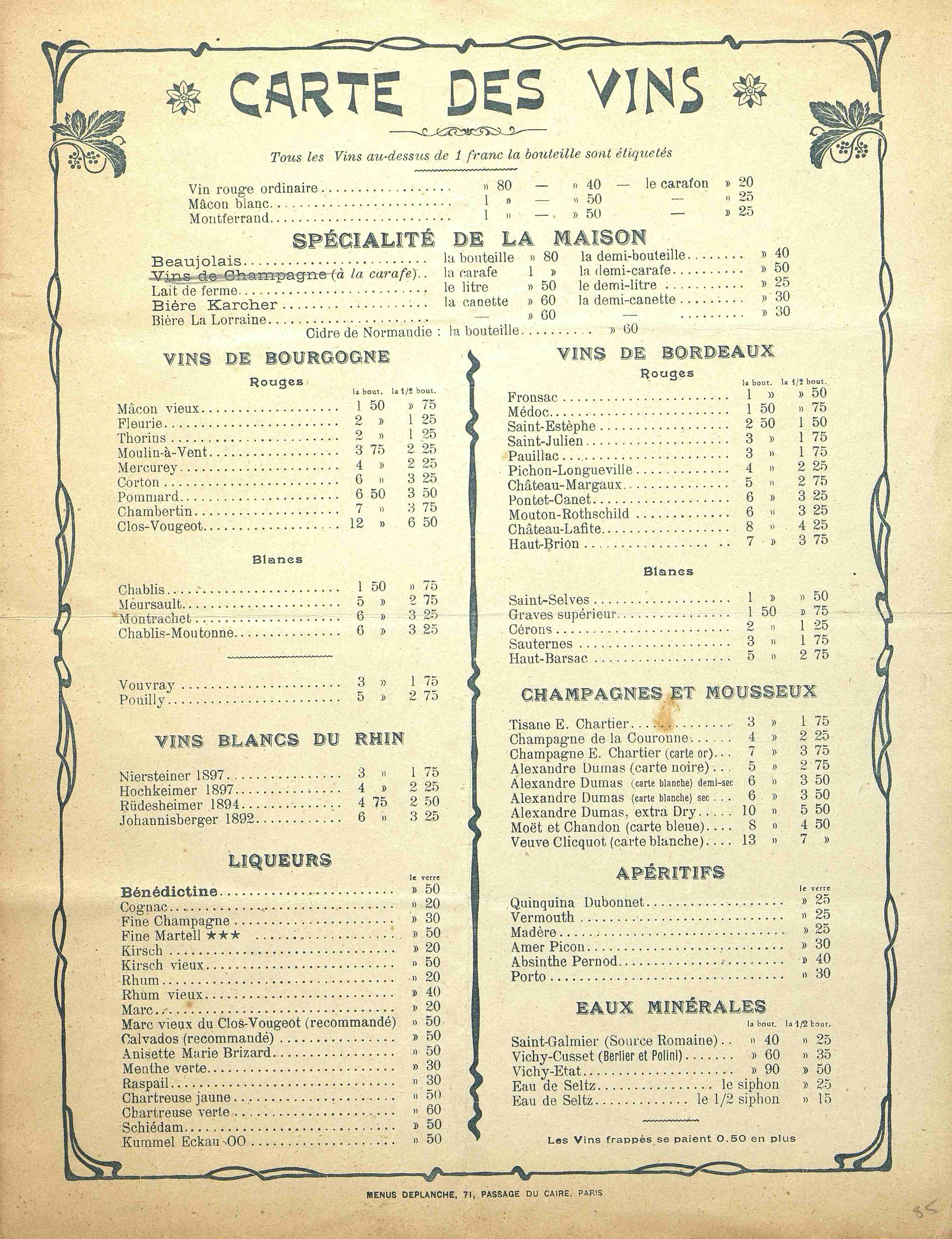 Menus Deplanche, Paris.