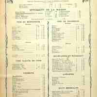 [Carte de restaurant. Paris. 1907]
