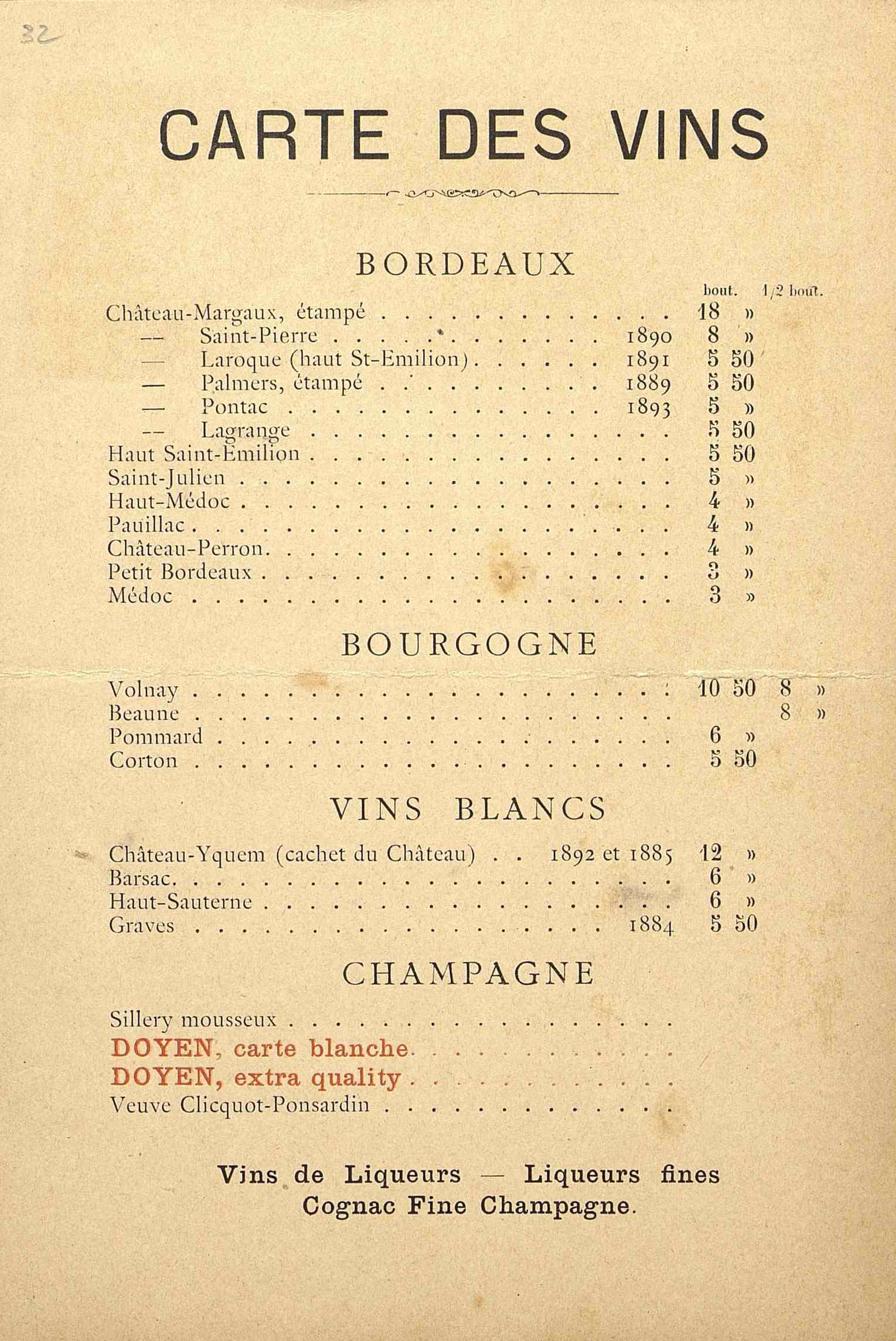 Boissons : Café. Champagne.