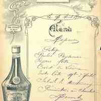 Plats servis : Potage. Poules Paysannes. Royans Frits. Civet de Lièvre. Entrecôtes Maître d'Hôtel. Salade de Montmorency. Piémontais au Chocolat. Desserts.