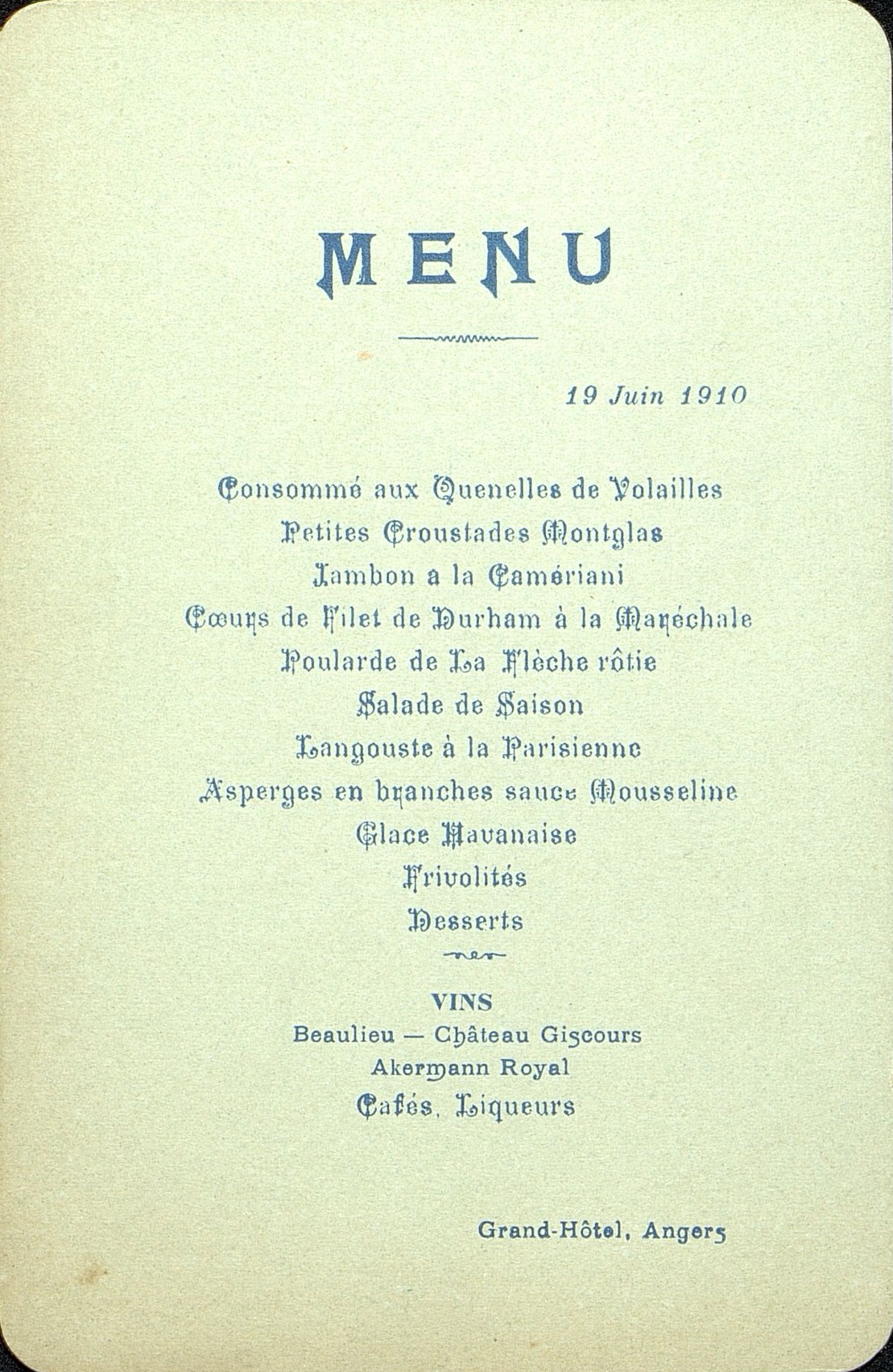 Menu du 19 juin 1910