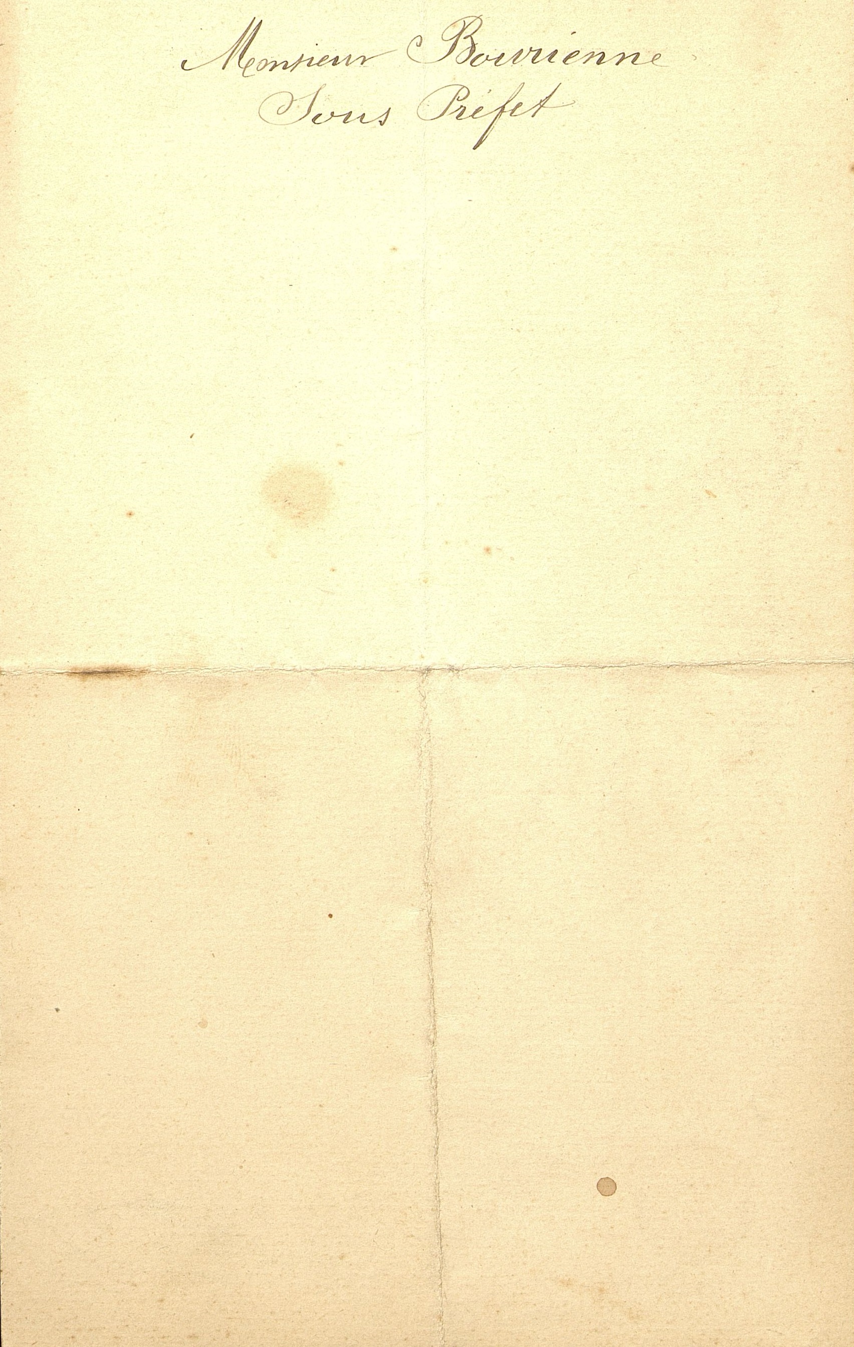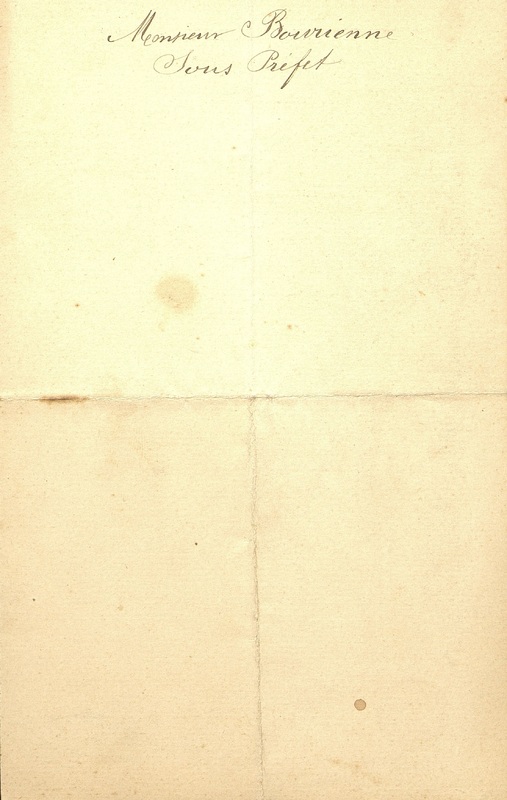 Note manuscrite au verso : M Bourienne Sous-Préfet.