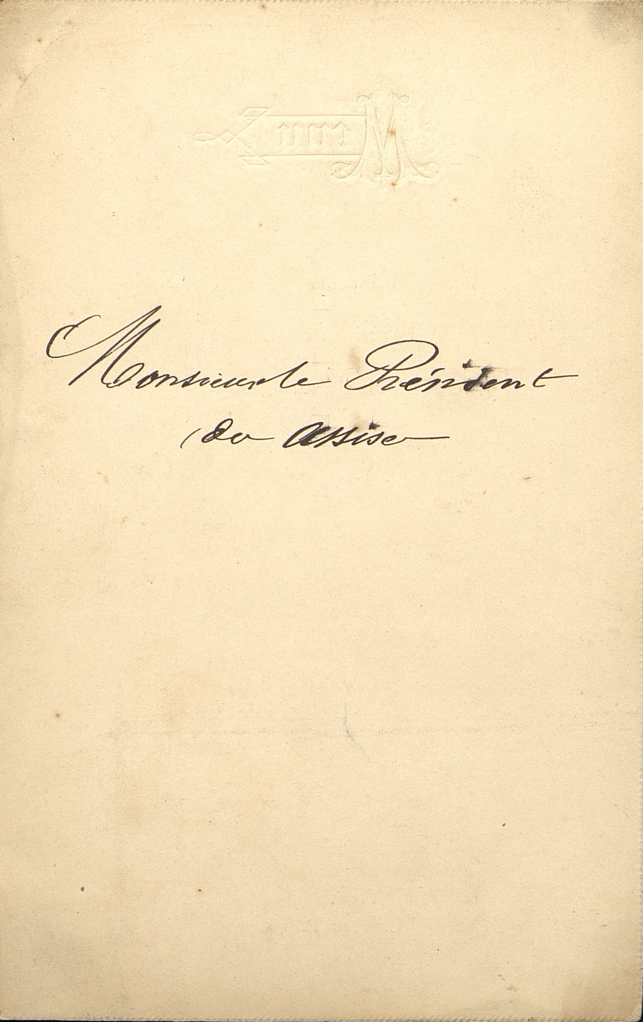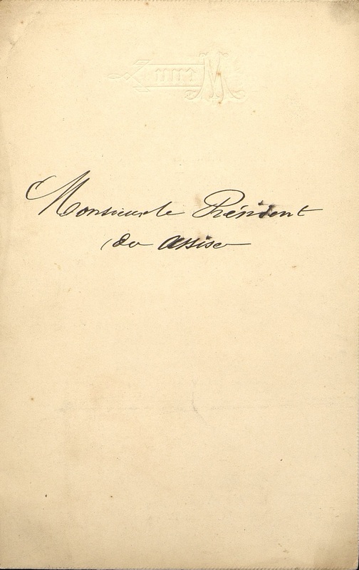 Menu du 29 avril 1896. Au dos en manuscrit, Monsieur le Président des Assises. Liseré de bordure doré.