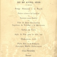 Menu du 29 avril 1896.