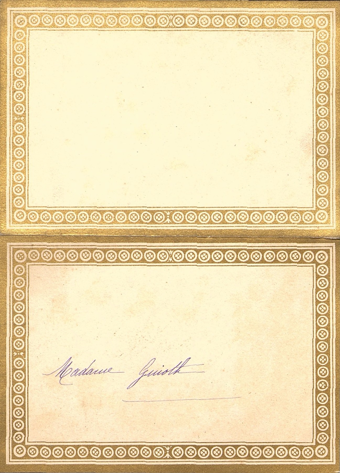 Menu pliant au nom de Mme Guioth