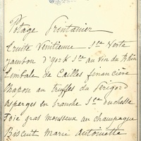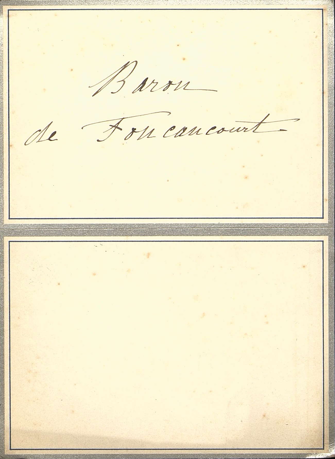 Menu pliant en manuscrit au nom du Baron de Foncancourt.