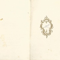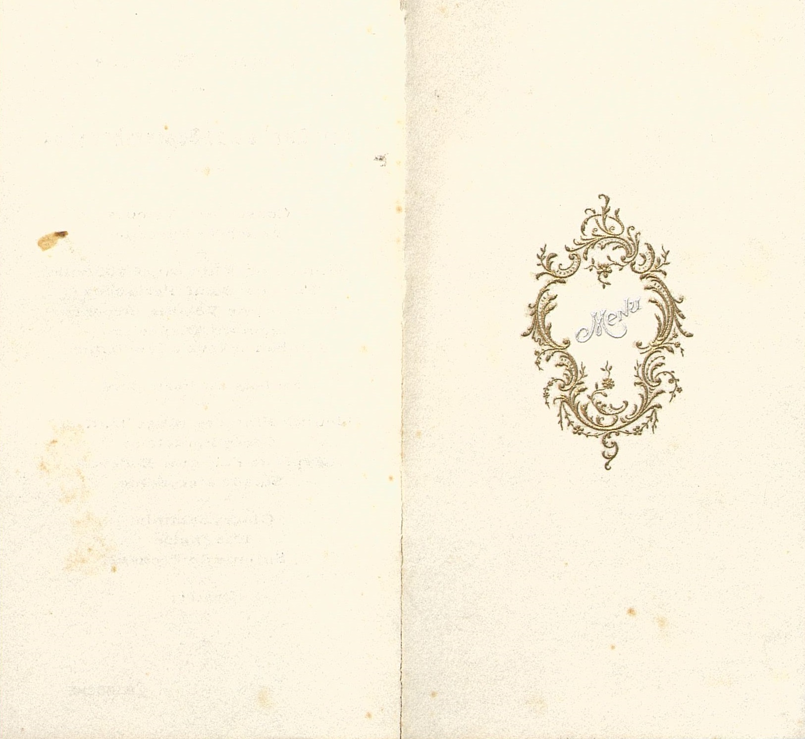 Menu pliant du Déjeuner du 27 Septembre 1904 tenu au Château de Montanceix. Titre argenté encadré de feuilles d'acanthes et fleurs dorées en forme de cartel.