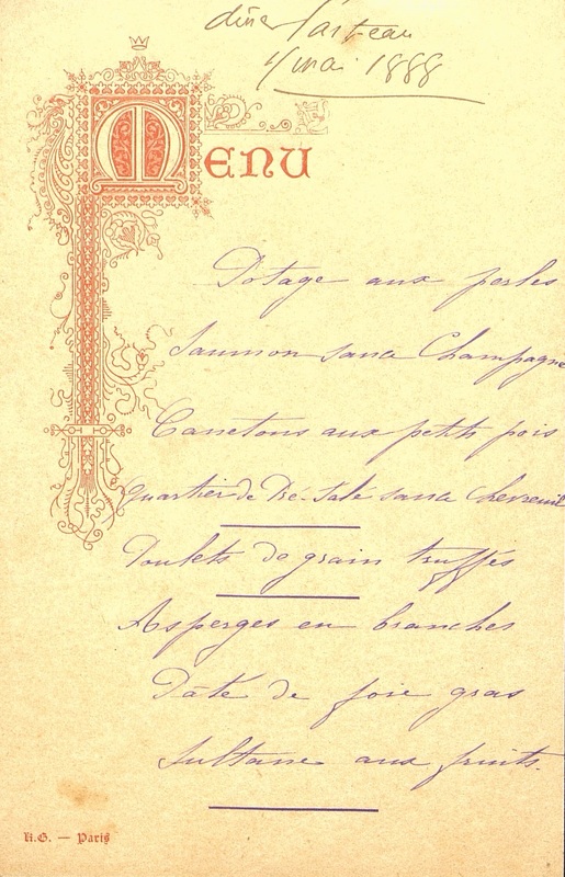 Diner du 11 mai 1888, manuscrit, au nom de M. Pellisson.