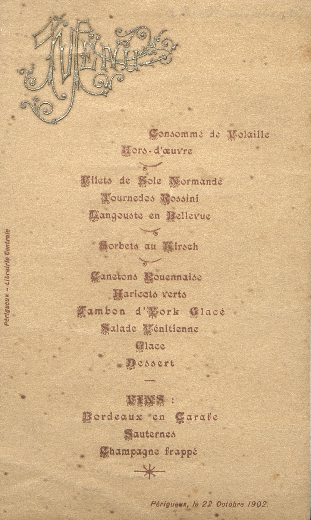 Menu du 22 octobre 1902