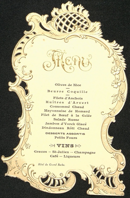 Menu ajouré, Hôtel du Grand Bacha.