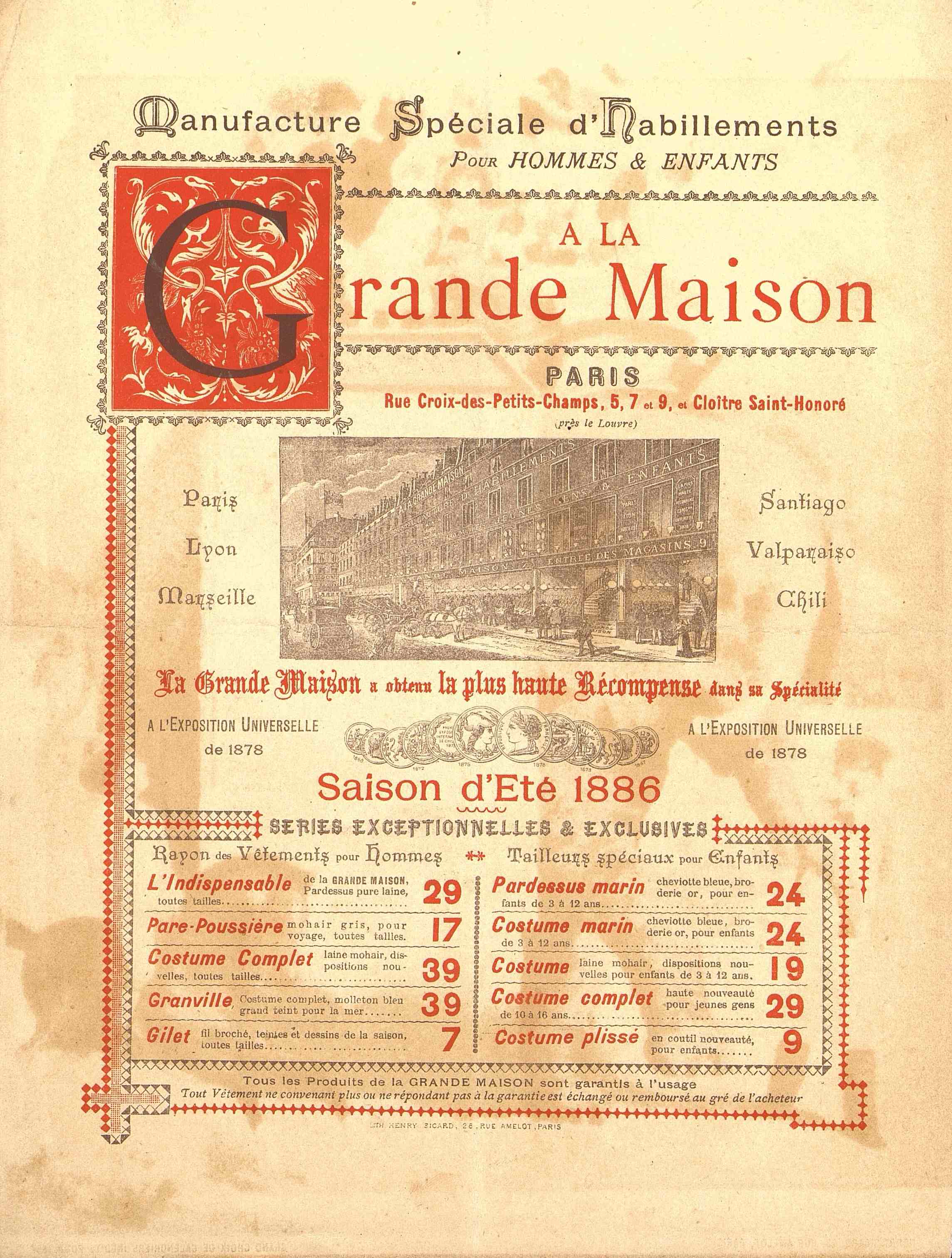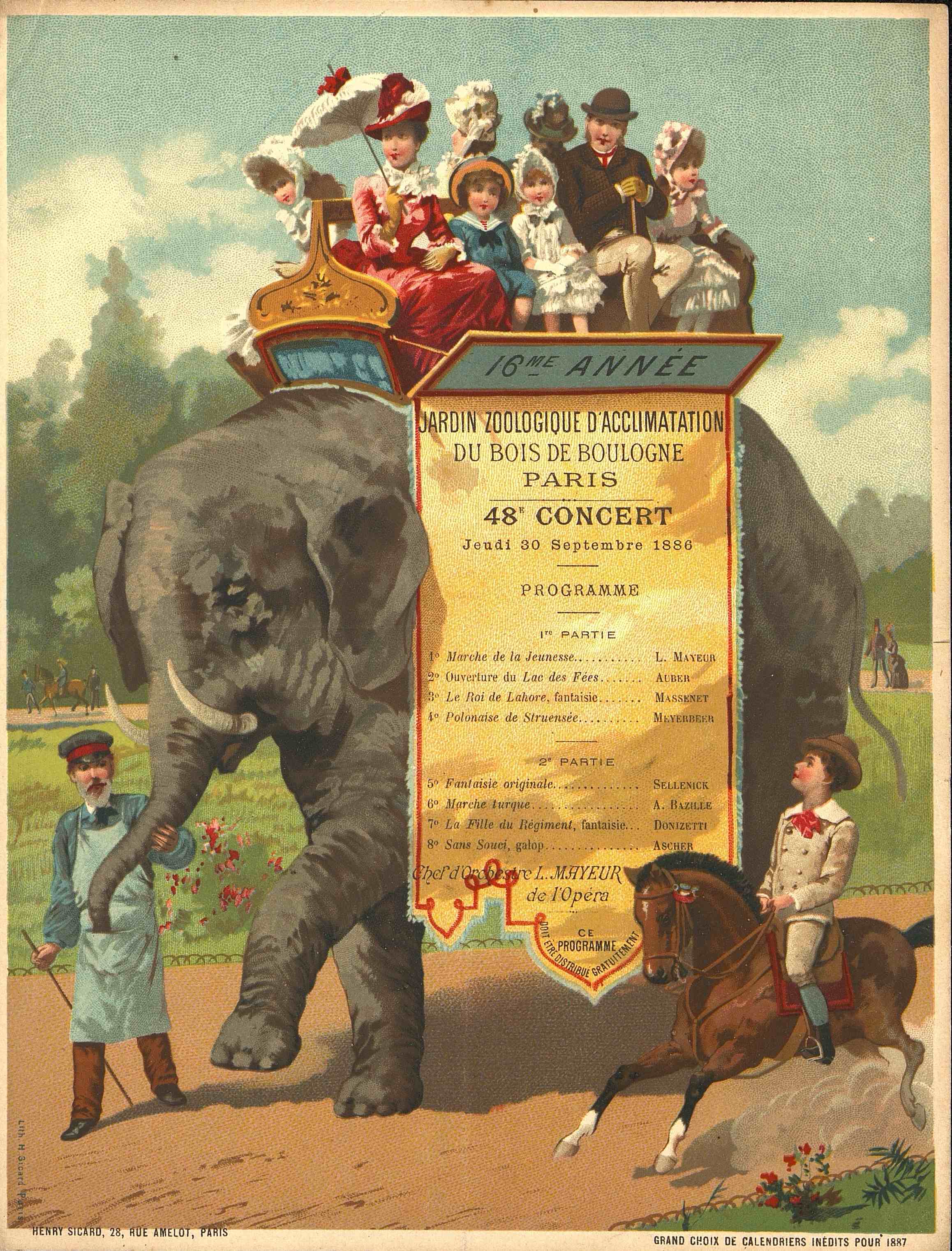 Programme du 48ème Concert du Jardin Zoologique d'Acclimatation du Bois de Boulogne, Paris. Au dos une publicité pour le magasin : A la Grande Maison à Paris.