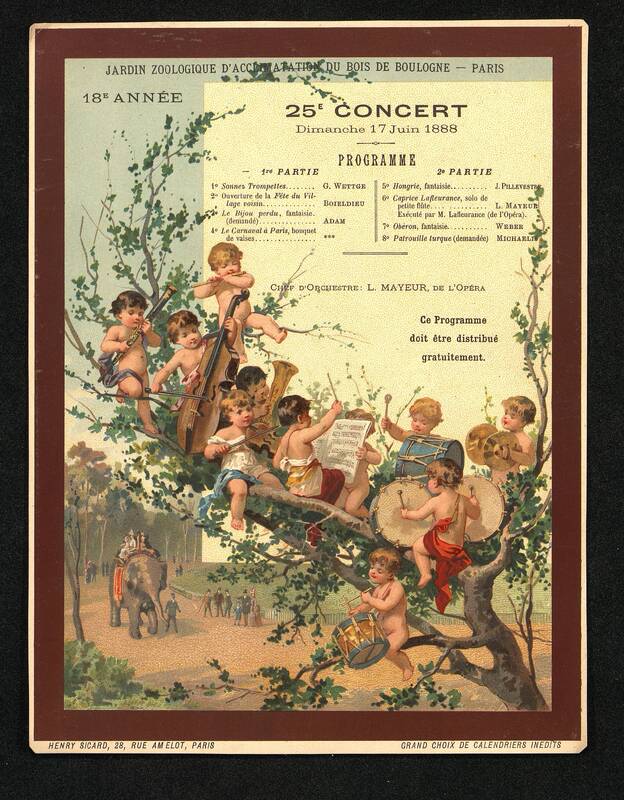 Programme du 25ème Concert au Jardin Zoologique d'Acclimatation du Bois de Boulogne en date du 17 juin 1888.