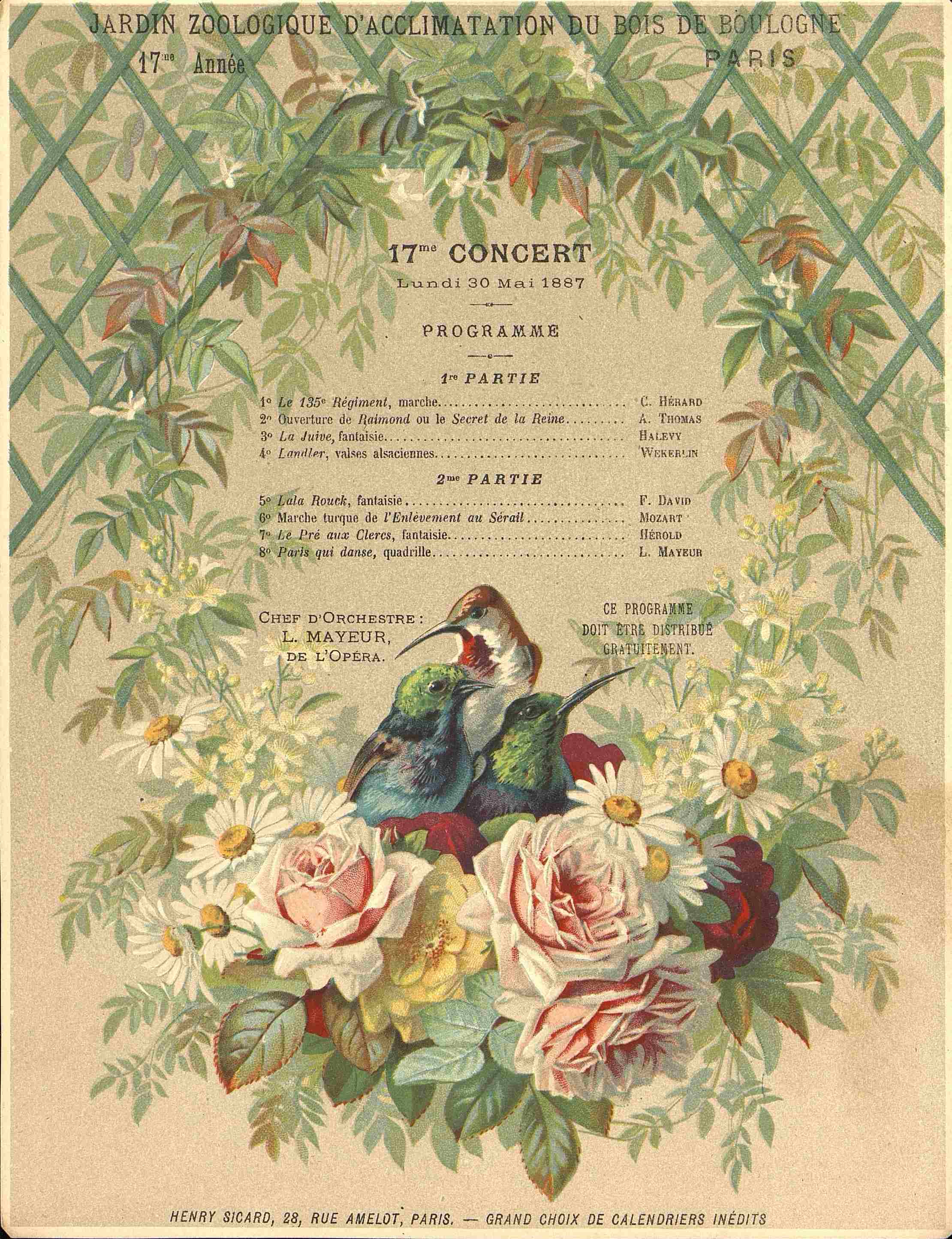 Programme du 17e Concert du Jardin Zoologique d'Acclimatation du Bois de Boulogne.