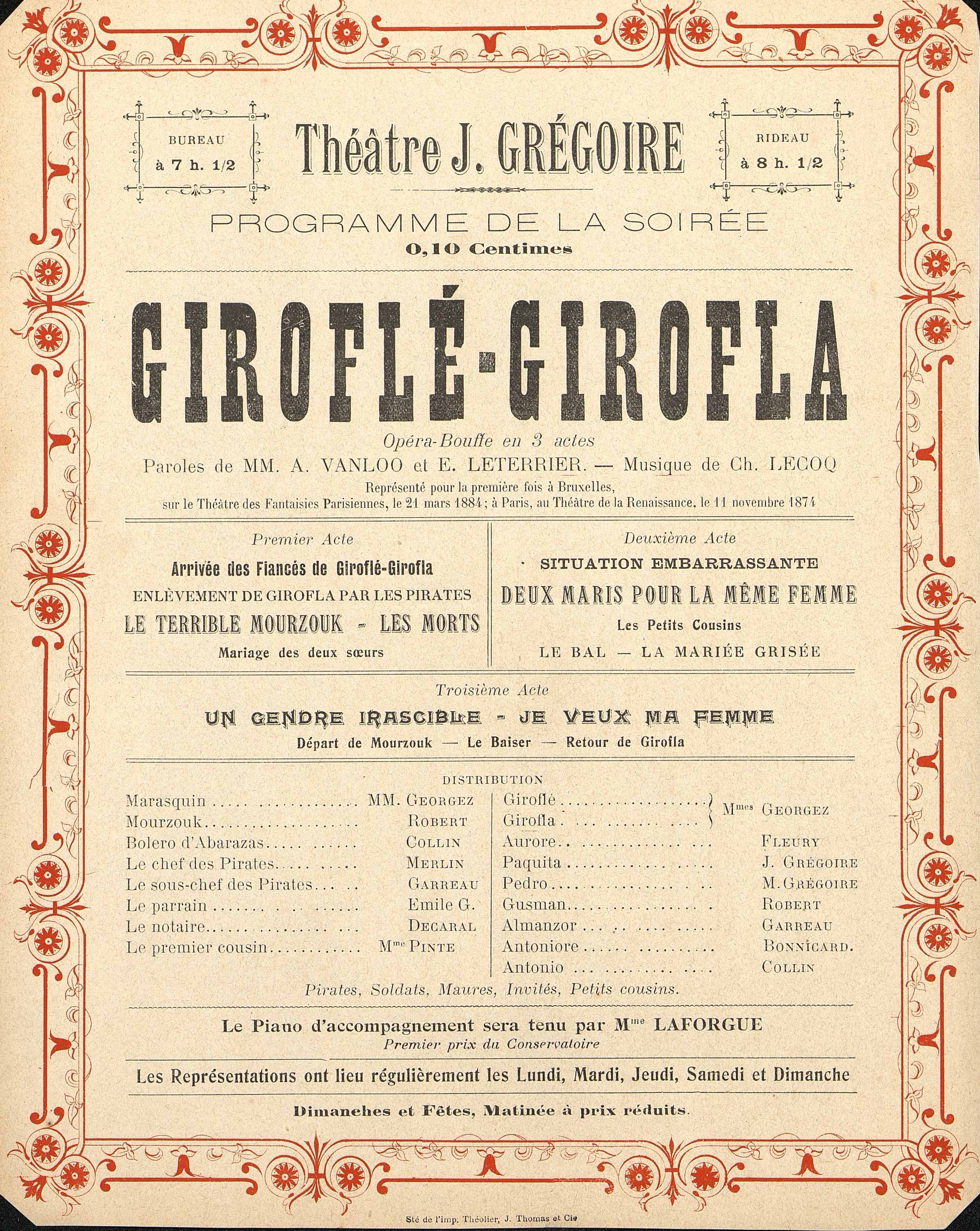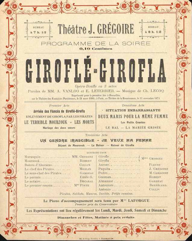 Publicité autour de la pièce opéra-bouffe en 3 actes : Giroflé-Girofla