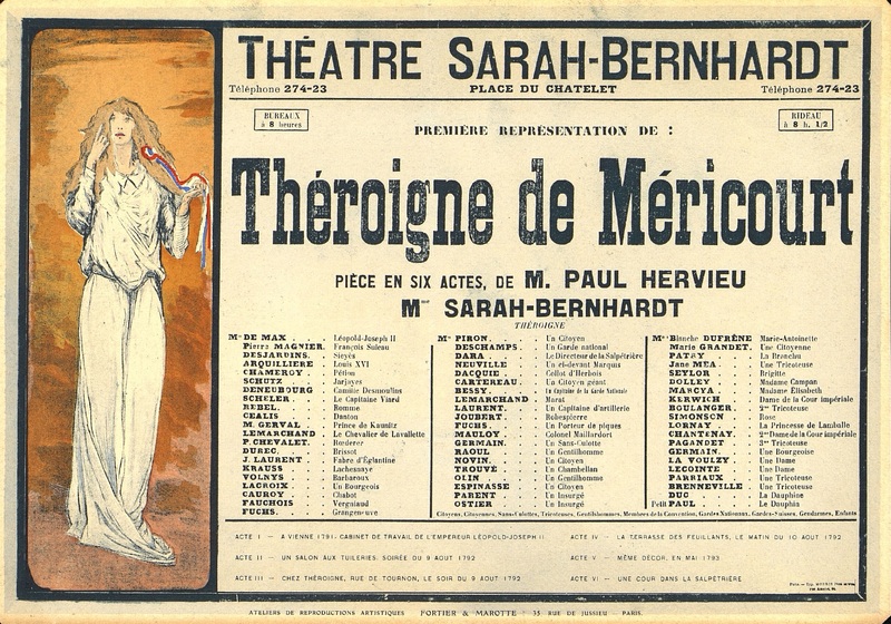 Théroigne de Méricourt, pièce en 6 actes au Théâtre Sarah-Bernhardt.