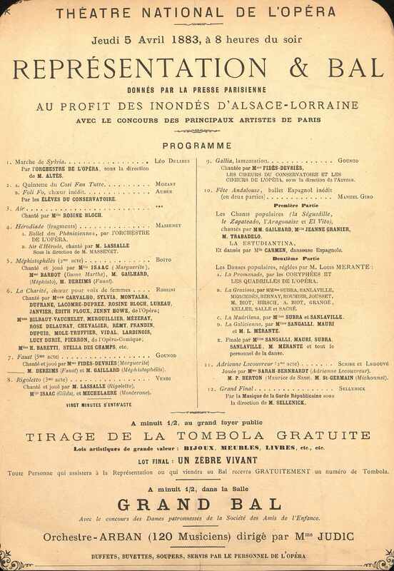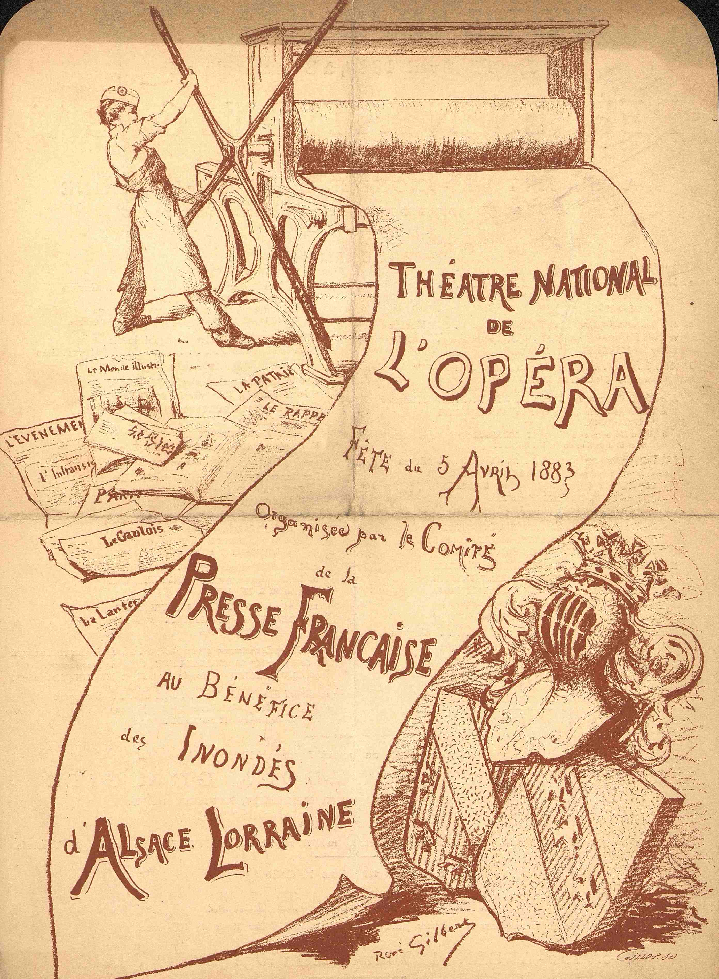 Fête du 5 avril 1883, organisé par le Comité de la Presse française au bénéfice des inondés d'Alsace Lorraine.