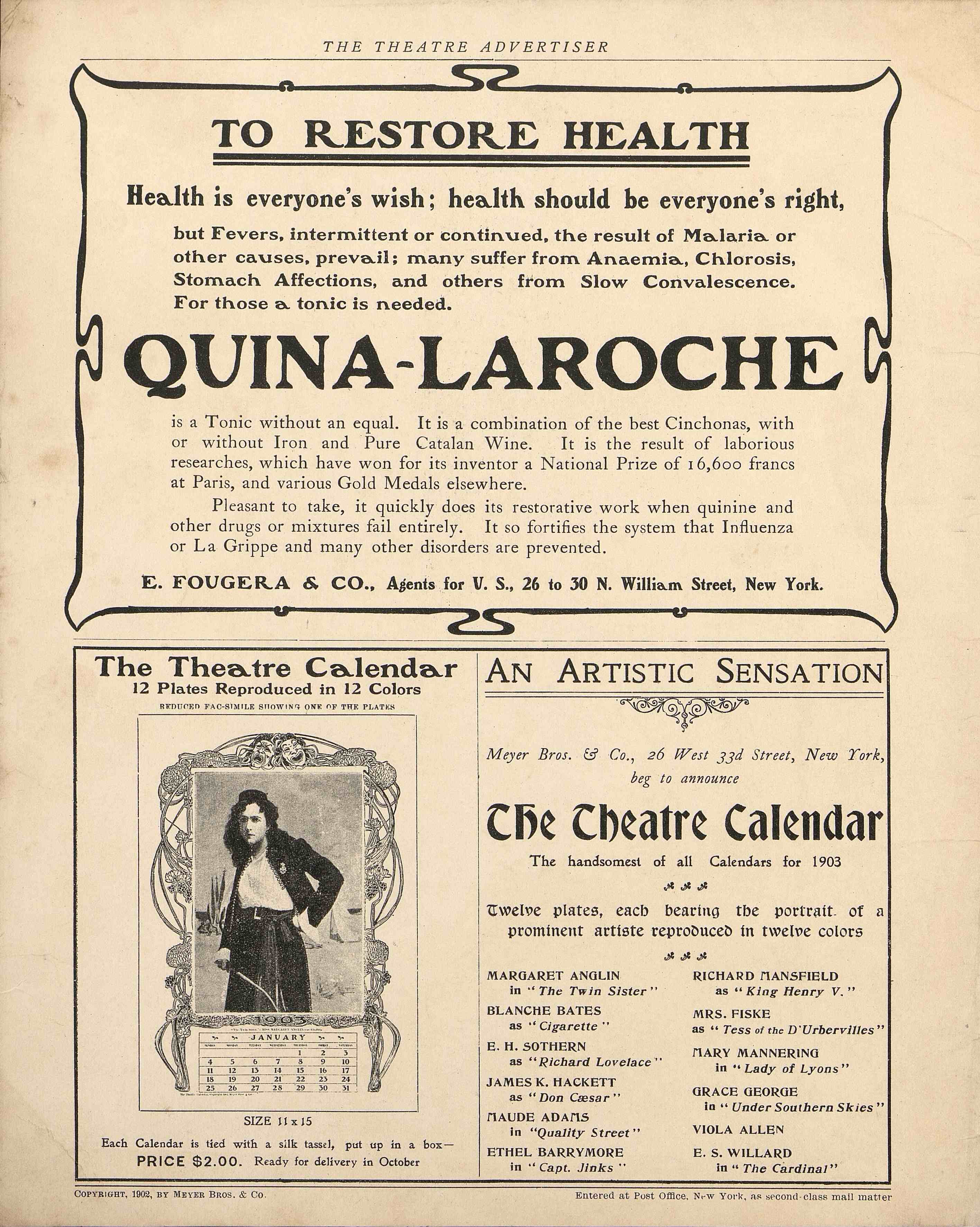 Page de couverture du magazine "The Theatre", d'octobre 1902 avec l'actrice américaine Leslie Carter, de son vraie nom Caroline Louise Dudley (1862-1937). Au dos des publicités.