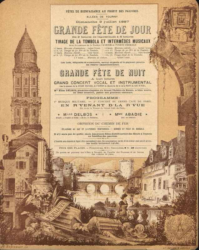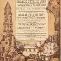 Programme : Grande fête de jour. Grande fête de nuit. Fêtes de Bienfaisance au Profit des Pauvres, le dimanche 3 juillet 1887. Musiques par les fanfares Avenir et Union Chorale, Orphéon du Chemin de fer et de la Troupe du Café de Paris.