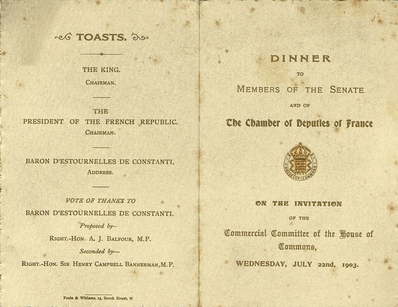 Dinner to Members of the Senate and the Chamber of deputies of France.