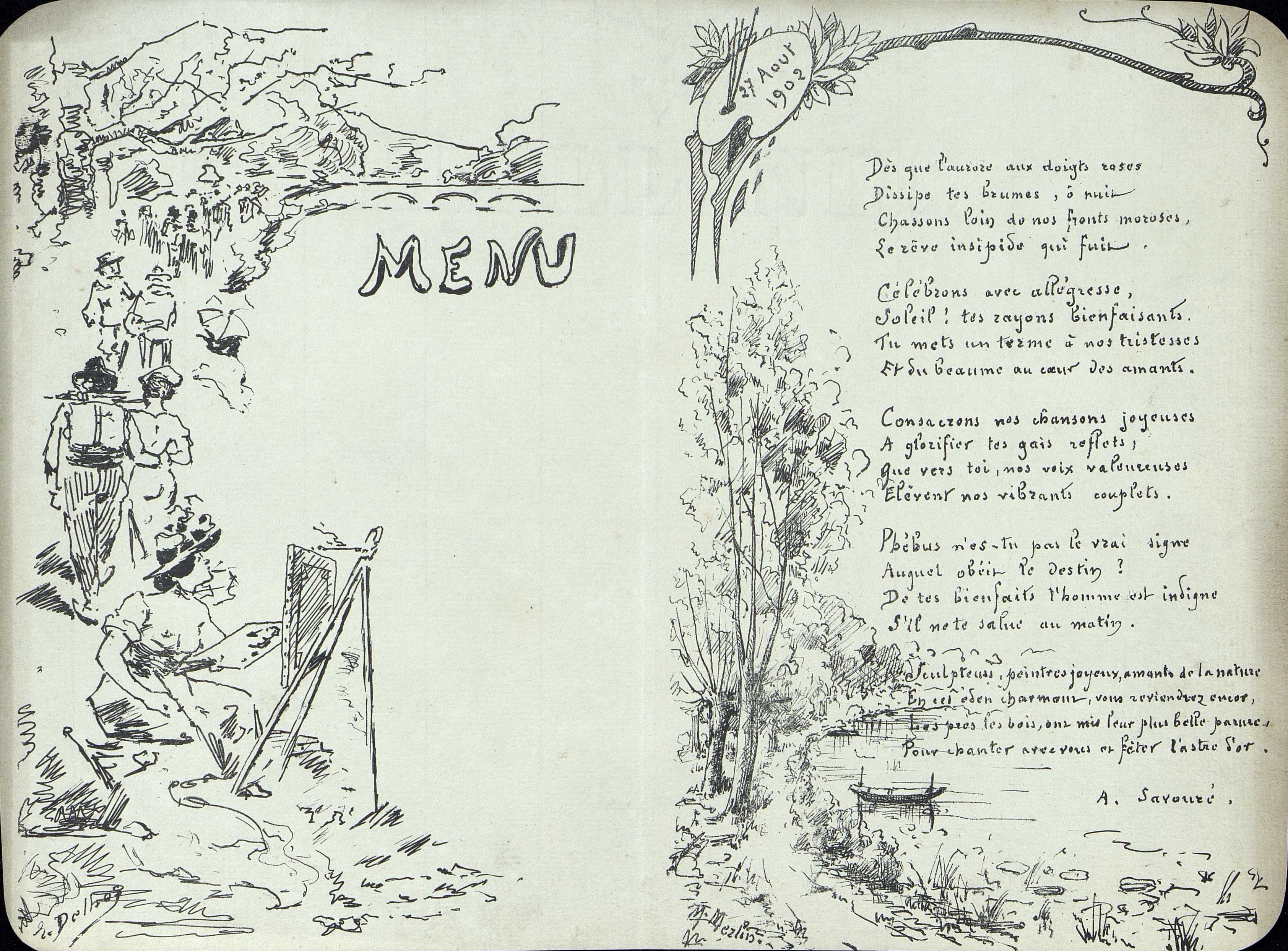 Menu avec un poème. Sans localisation.