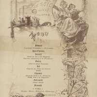 Plats servis : Consommé printanier et St-Germain. Hors d’œuvre. Relevés : Filet de Sole à la Dieppoise. Bouchées mignonnes à la Parisienne. Entrées : Filet de Bœuf Dauphine Rôt : Chapons du Mans au cresson. Salade. Légumes : Haricots Verts à la Française.