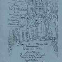 Illustration : Assemblée d'auvergnats devant l'affiche du restaurant.