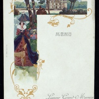 Menu publicitaire vierge et illustré : Diane de Poitiers au Château de Chenonceaux. Liqueur Grand Marnier.