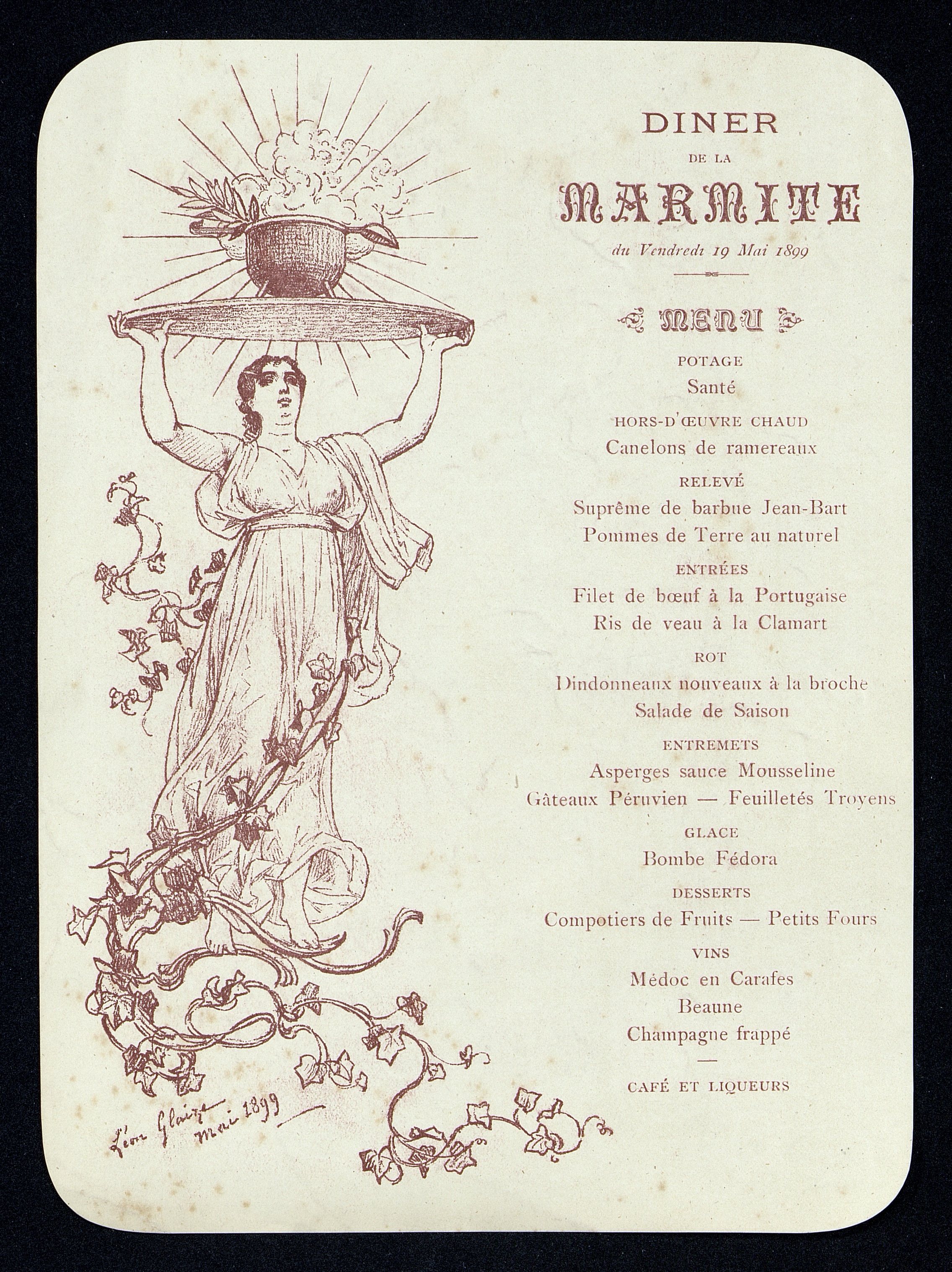 Menu du Dîner de la Marmite du vendredi 19 mai 1899.